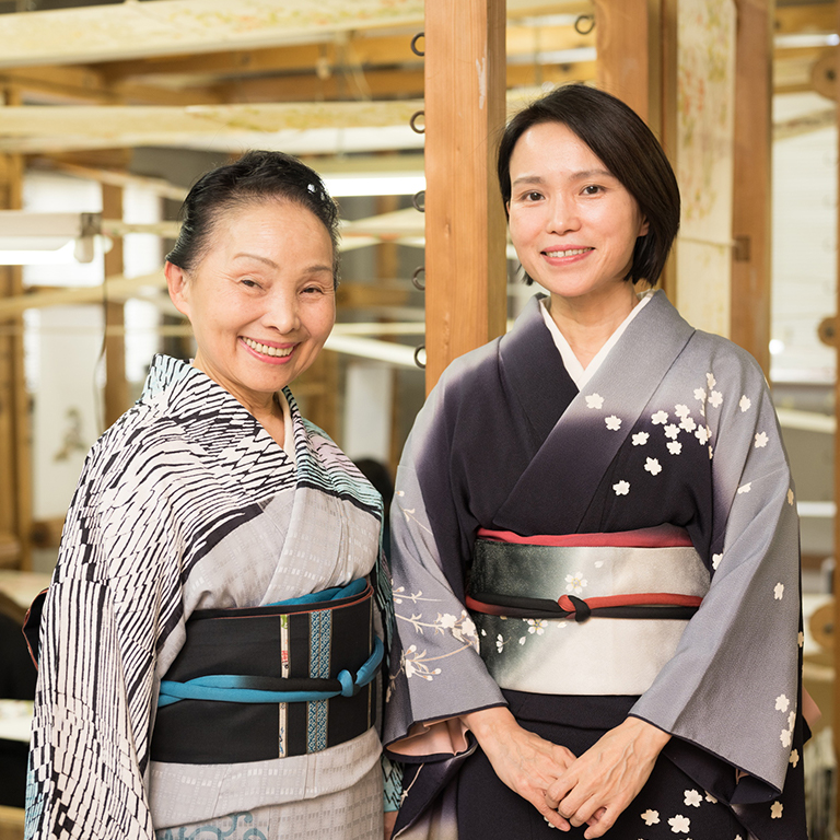 約300年の伝統を持つ、手描き京友禅。『岡山工芸』はその色彩豊かな京友禅の着物で、幾多の女性を華やかに彩ってきました。心躍るような美しい着物に袖を通せば、まるで夢見心地。職人の確かな技を体感してください。