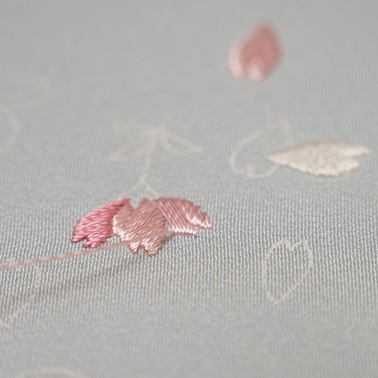 花びらの柄5枚を繡うのにかかる時間は3時間半ほど。糸の縒りを隣の糸の縒りと合わせることで美しく見えるなど、非常に細かい熟練の技を体験してみましょう。