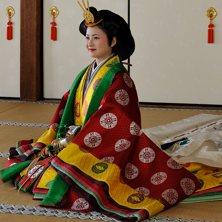 「十二単記念撮影館 雪月花苑」では、本物の平安装束を身にまとった撮影体験をお楽しみいただけます。