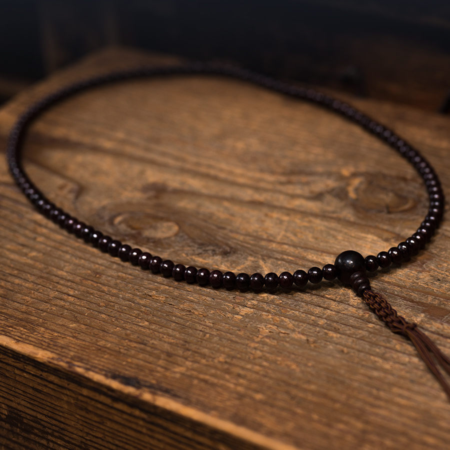 高級な紫檀でつくられた珠が108つ通された、貴重な京念珠。